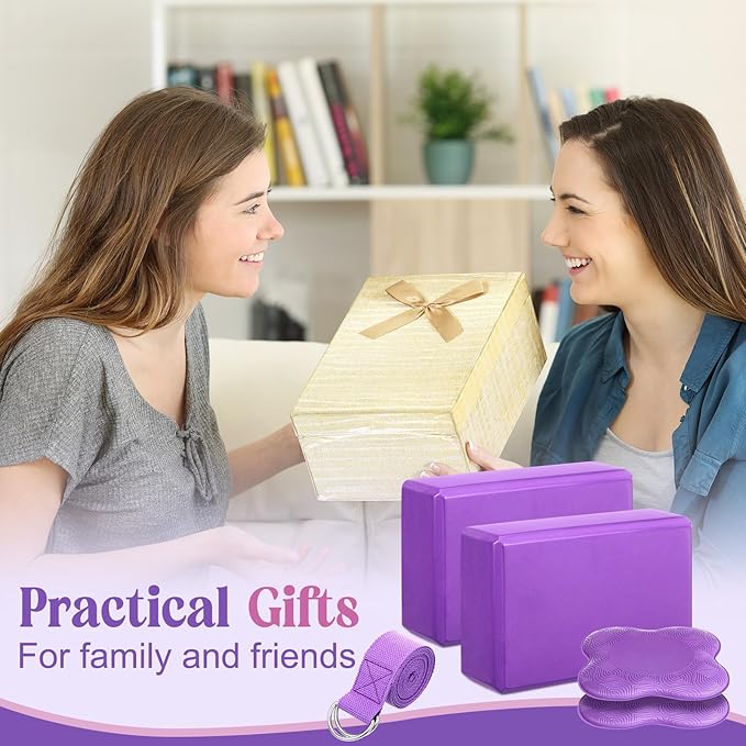 • Products Include: you will receive 5 pcs yoga accessories starter kit, including 2 pcs yoga blocks, 2 pcs yoga pads, 1 pc yoga strap; Warm Tips: after opening the packaging bag of the yoga block, there will be some smell, which can be placed in a ventilated place for about 1-2 days, and the smell can dissipate