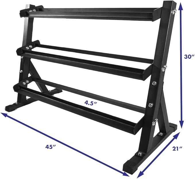 - Includes the rack and 2 each of the following dumbbells: 5, 7.5, 10, 12.5, 20, 25, 30, 35, 40 lbs dumbbells.