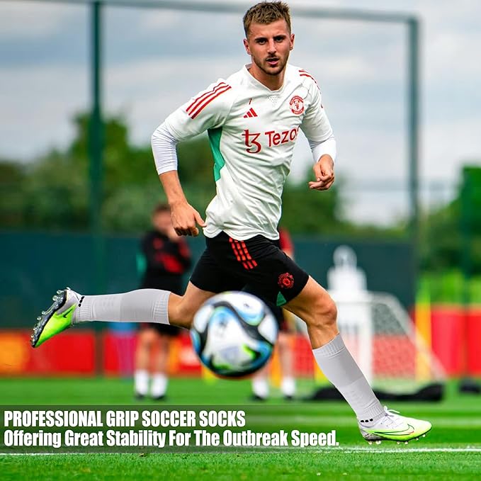 - Grip Soccer Socks: Made of the 60% cotton 35% polyester and 5% spandex, soft and breathable, designed with large-area non skid silicone pads on the bottom and heel, provided with good stability, can prevent injury and improve speed, allow you to perform well during sports