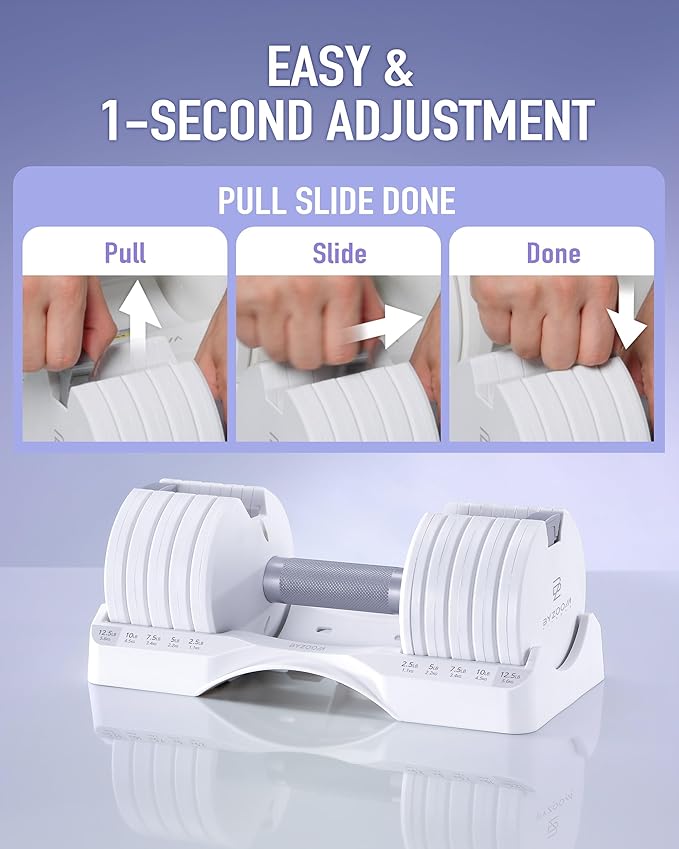 - INNOVATIVE PATENTED DESIGN: Engineered with a customer-first approach, BYZOOM FITNESS adjustable dumbbells feature an internationally patented mechanism, making weight selection effortless. Designed to simplify strength training, this system ensures a smooth and user-friendly experience for all fitness levels.