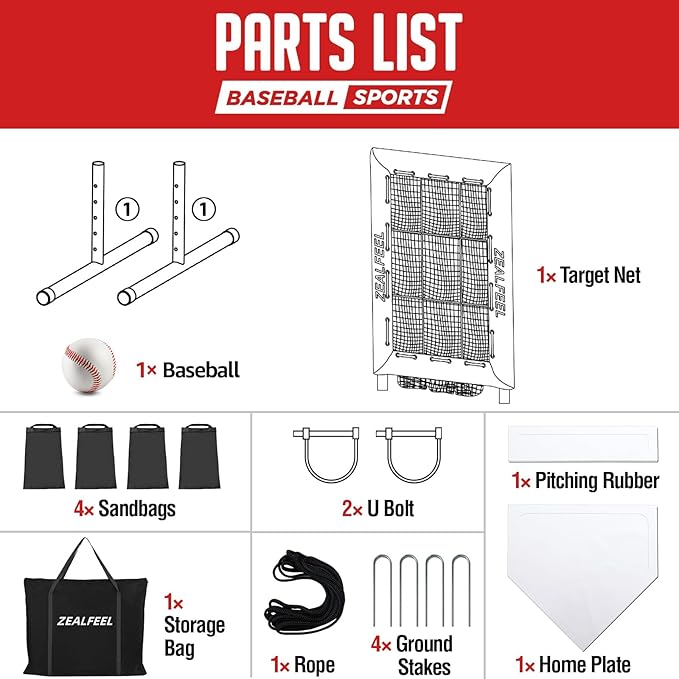 - Your Personal Catcher Anytime: NO PARTNER? NO PROBLEM. The ZEALFEEL hitting net baseball acts as your personal catcher, holding every throw securely within the 9-pocket grid. Practice independently, stay consistent, and focus on your skills. Complete with training balls, home plate, and pitching rubber, this set helps you create a near-realistic training environment for more effective sessions