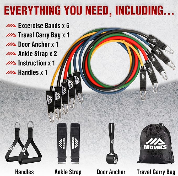 - ššššššššš šššššššššš šššššš: Our resistance band set of five color-coded (Green: X-Light, Blue: Light, Yellow: Medium, Red: Heavy, Black: X-Heavy) caters to all fitness levels. Ideal for beginners and pros, they adapt to various workout intensities for a personalized fitness experience.