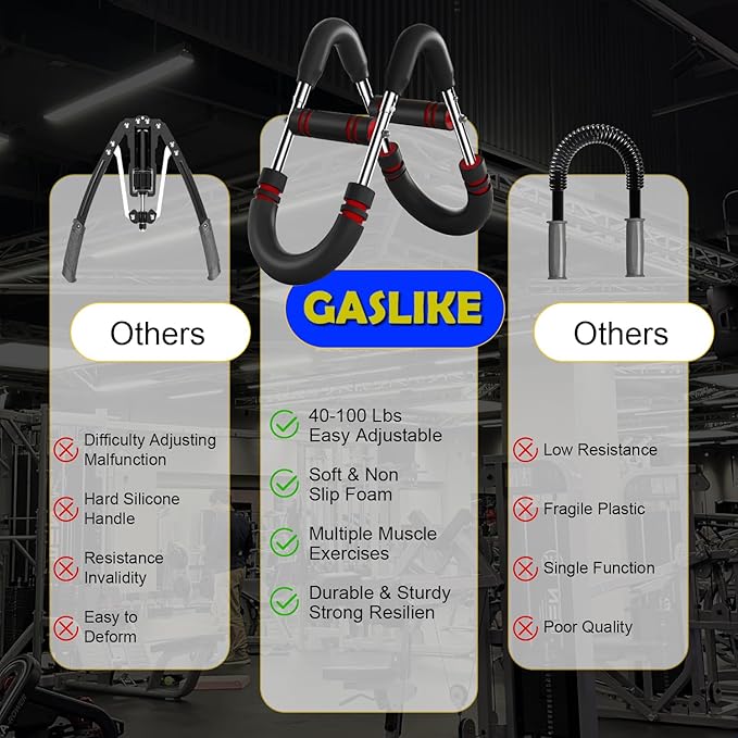 - 【EFFICIENT MULTI-FUNCTIONAL FULL-BODY WORKOUT】The GASLIKE Twister Arm Trainer as your personal workout trainer will help you get a killer chest workout! Its unique U-shape work multiple muscle groups with precision. Whether it's the biceps, triceps, deltoids, pectoralis major, or even leg muscles, etc, they can all receive effective stimulation and exercise, helping you shape a strong, and well-defined upper body. It will help build muscle and stamina over time!