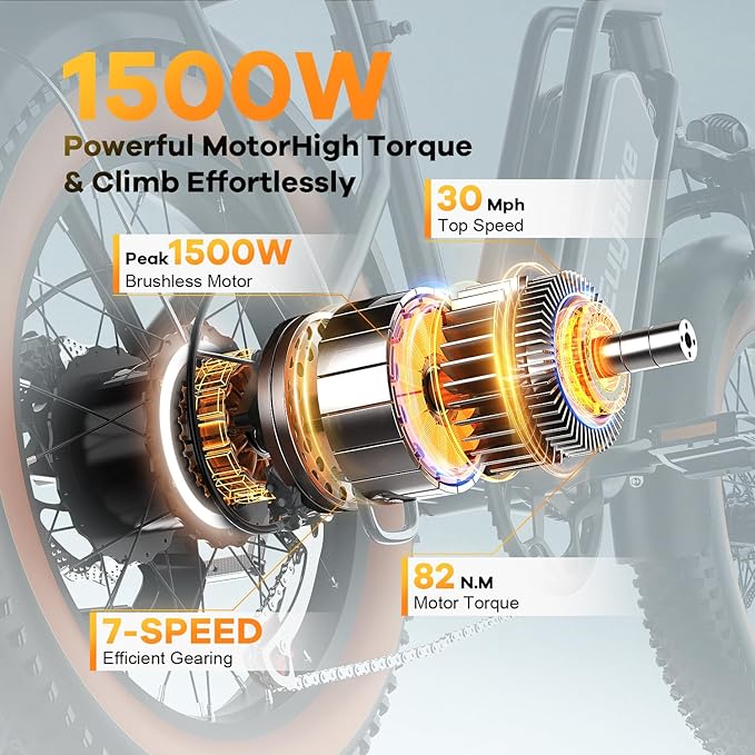 - ๐๐จ๐ฐ๐๐ซ๐๐ฎ๐ฅ ๐๐๐๐ค ๐๐๐๐๐ ๐๐จ๐ญ๐จ๐ซ:This electric bike is powered by 750W(Peak 1000W) brushless motor, easily reach a top speed of 34 MPH. With strong driving force and climbing hills ability, climbing 30ยฐslopes, can conquer various terrains such as beaches, mountains, snow, city streets.If you like thrills and challenges, you can also ride this mountain Ebike for a non-stop adventure