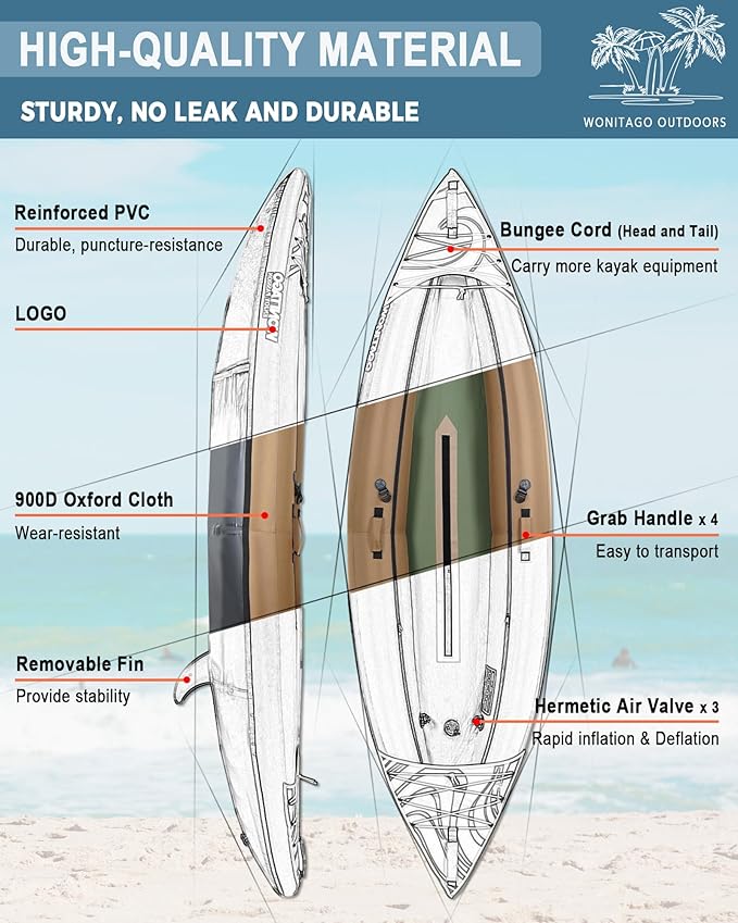 - MUST HAVE FOR OUTDOOR ENTHUSIASTS ---Choose WONITAO, enjoy a happy journey of water sports with your family, whether you're exploring the coast, racing down a river, or enjoying a peaceful lake, our kayaks are the perfect choice for your next adventure