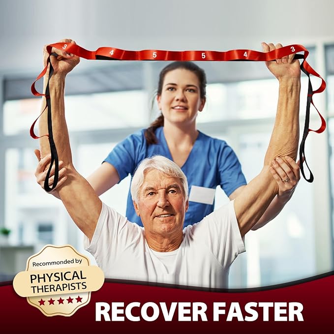 - 10 LOOPS FOR FULL-BODY STRETCHING β This yoga stretching strap achieve deeper stretches with 10 reinforced loops and 86 inch length and 1.5 inch width for customizable grip positions. Perfect for hamstrings, hips, shoulders, and back pain relief. Secure non-Elastic design holds any stretch intensity.Ideal for yoga poses, post-operative rehabilitation and exercise recovery