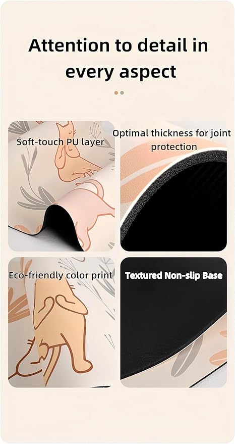 • 🐾 【Artistic Yoga Companion】Graceful‌ hand-drawn kittens practicing Downward Dog & Tree Pose dance across a clean white mat, surrounded by blooming flowers – turns your yoga flow into a joyful storytelling session.