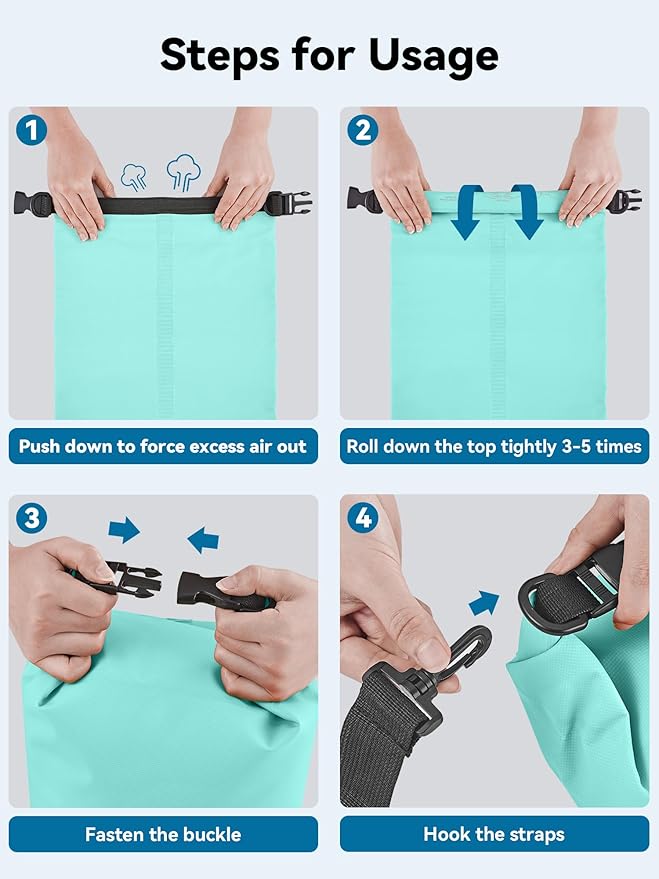 - Multifunctional - Equipped with adjustable shoulder straps for shoulder carrying and backpack, our dry bag is very convenient for different occasions like boating, rafting, kayaking, hiking, camping, fishing, mountaineering, etc. The lightweight dry bag won't weigh down your arms or shoulders