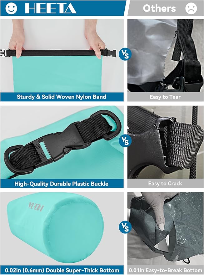 HEETA Waterproof Dry Bag for Women Men(Upgraded Version) 5L/10L/20L/30L/40L Roll Top Lightweight Dry Storage Bag Backpack with Emergency Whistle for Travel, Swimming, Boating, Kayaking, Camping, Beach