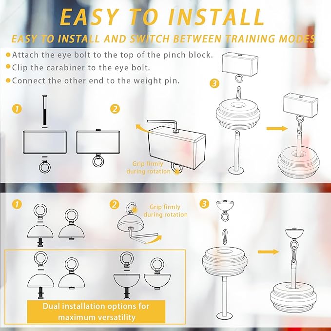 - π§ Simple Setup with Included Hardware Quick and secure assembly using carabiners and wrench. Compact and easy to switch between grip styles.