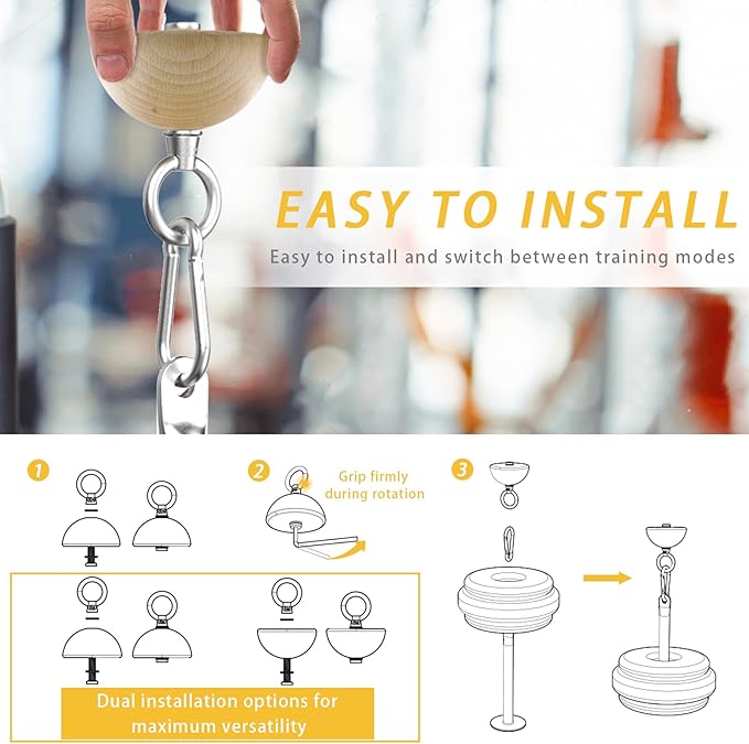 - š§ Easy Setup with Included Tool Each set includes a wrench for quick and secure installation. The heavy-duty steel ring and carabiner make it easy to connect to cable machines, resistance bands, or anchor points.