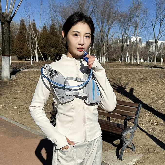 • Minimalist Storage Design: This running vest backpack features two front pockets for bottles, phone, or keys. A single main compartment and rear elastic cord offer simple, efficient storage without bulk
