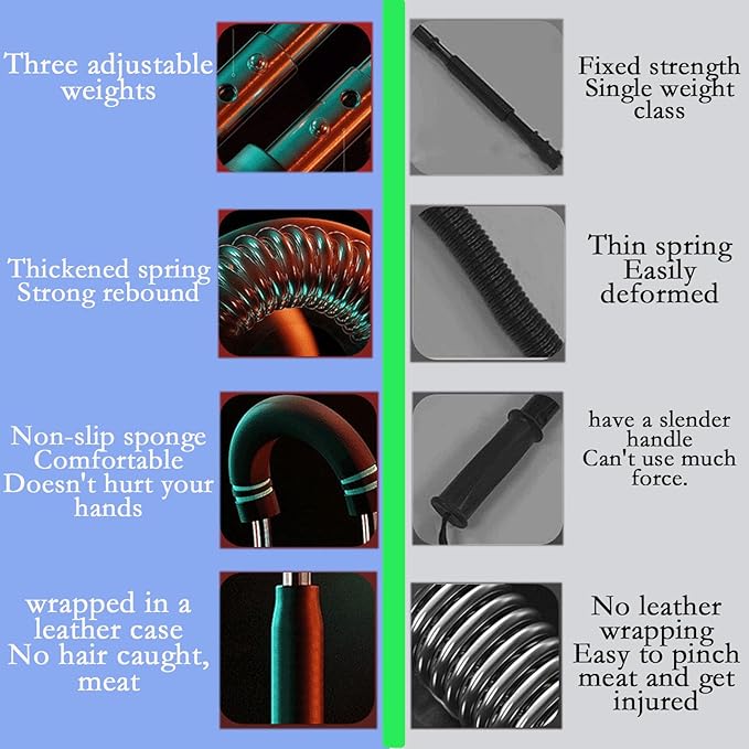 - 【Durable, comfortable, and sturdy design structure】U-shaped double steel springs provide strong cushioning, smooth rebound, and thickened steel pipes increase training intensity to ensure muscle shaping. Our arm trainer is durable, rust resistant, and wrapped in a durable leather shell, providing stable stability and reliable resistance. Anti slip foam handle ensures comfortable grip and prevents hand fatigue and discomfort during exercise.
