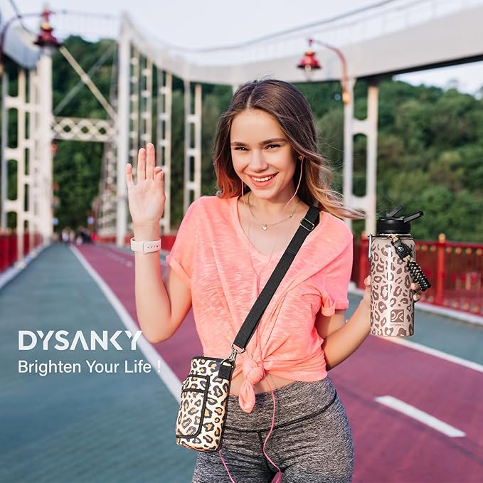 - VERSATILE AND STYLISH CARRIER BAG:The colorful water bottle carrier bag is designed to match the bottle's body, adding a touch of flair while providing practical functionality. The shoulder strap and carabiner make it easy to carry and hang, whether you're out on a hike or running errands. Plus, the small storage bag for your phone and a hook for keys make this bottle even more versatile.