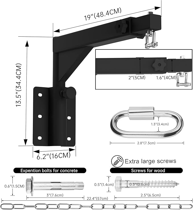 - 【 Adjustable Length 】: The wall mounted sandbag hanger can be adjusted to 19-27 inches according to your needs, This makes it suitable for all sizes of boxing bag, kickboxing bag, Muay Thai bag and other similar equipment. When not in use, you can rotate 180 ° against the wall to save space,This adjustable punching bag mount is perfect for all your training needs