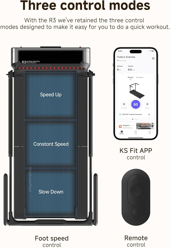 - Adjustable Handrail for Two Workout Modes - Like R1 and R2, R3 Hybrid+ features a height-adjustable handrail that lets you easily switch between two modes. Lower the handrail to use it as an under desk walking pad, speed is limited to 4 mph for safe, steady movement while working. Raise the handrail for full treadmill mode and unlock speeds up to 7.5 mph for brisk walking or running. Perfect for both focused workdays and energetic workouts.