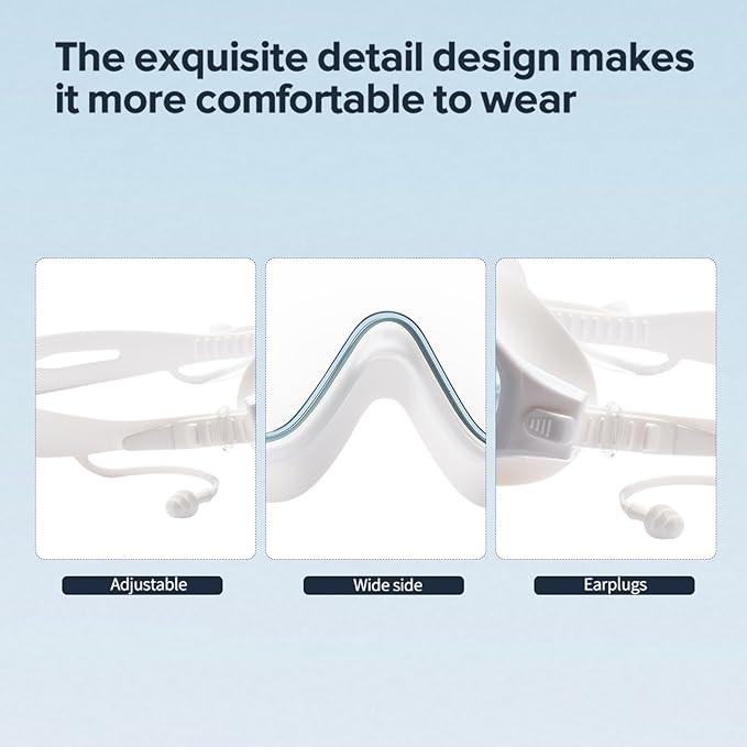 - 【Comfortable to Wear】The easily adjustable straps make the goggles fit better. The ergonomically designed frame reduces the pressure of the goggles on your face and is comfortable to wear for a long time, enjoy the pleasure of swimming
