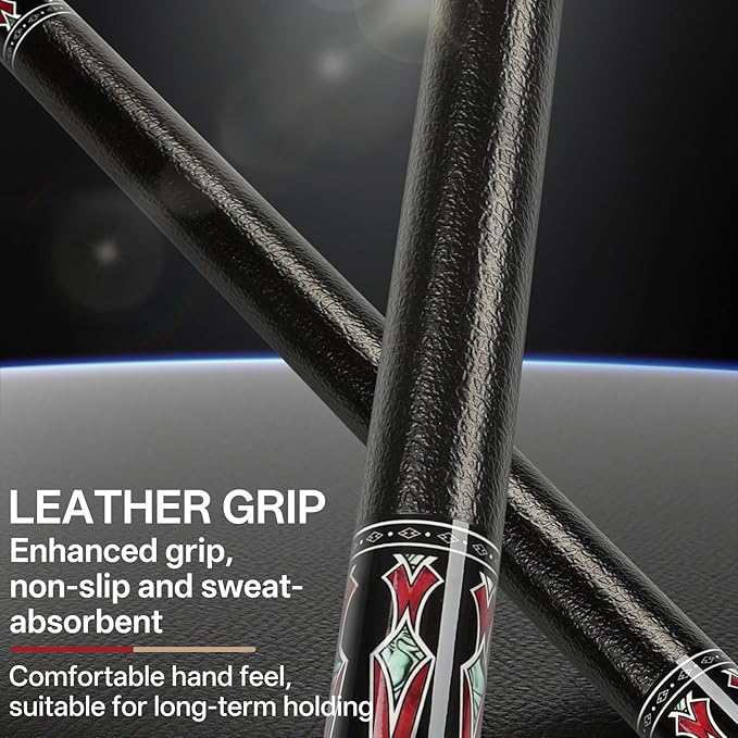 - Comfortable Pool Sticks: The leather grip is non-slip and sweat-wicking, reducing deflection, enhancing accuracy, and providing a comfortable feel for long-term use