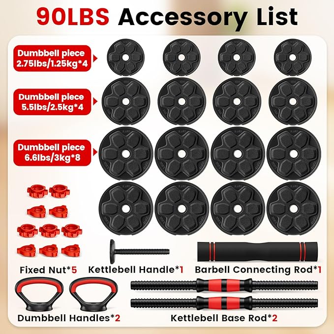 - 【4 in 1 Multifunctional Dumbbell Set】This versatile dumbbell set quickly converts into dumbbells, barbells,kettlebells, and push-up stands,making it suitable for a range of exercises,including bench presses,squats, and more. Serves all your exercise and fitness purposes!