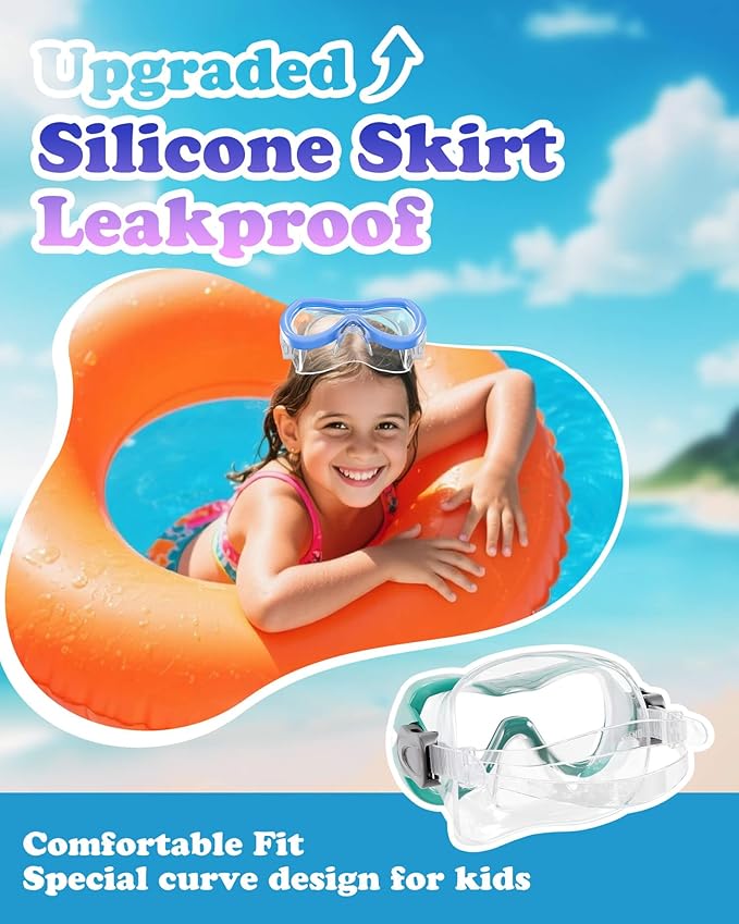 Aegend Kids Swim Mask Goggles, Tempered Glass 180° HD Wide View with Nose Cover
