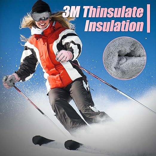 HANDLANDY Winter Insulated Work Gloves, 3M Thinsulate Thermal Water-Resistant Gloves for Men Women Touch Screen, Warm Ski Snowboard Cold Weather Gloves (Pink Grey, Medium)