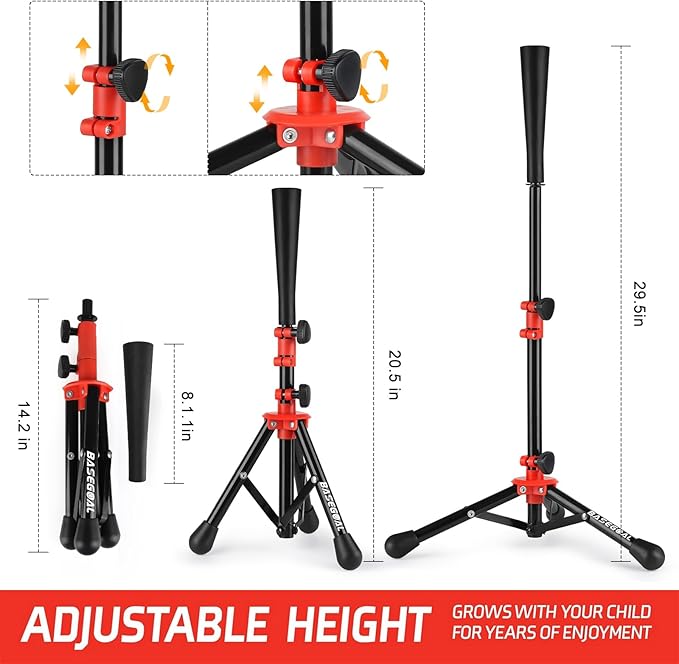 - 2.【Adjustable Height】kids baseball tee can adjustable Height adjustment from 20.5" to 29.5". Easy twist and lock height.