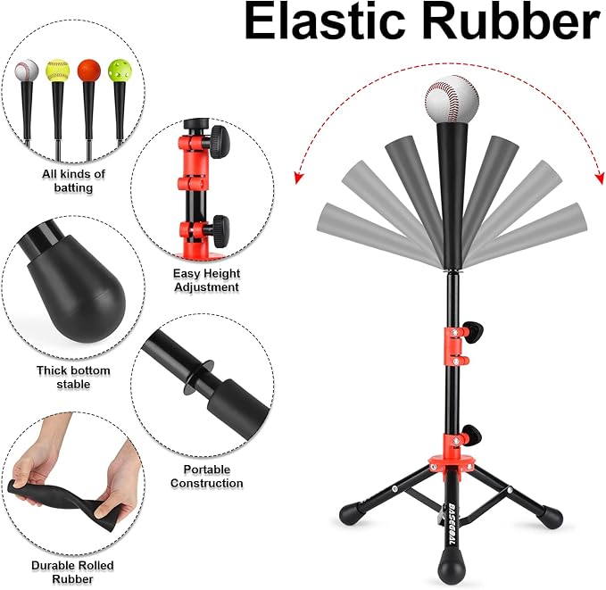 - 3.【DURABLE-HIGH QUALITY WRAPPED RUBBER】Youth Hitting Tee,Every BaseGoal Tee top is hand rolled,Strong and durable,Which is suitable for kinds of balls, with good elasticity, like baseball, softball, training ball and to have the real hitting feelings with special size design.