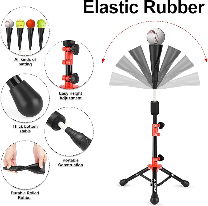 - 1.【STURDY TRIPOD STAND】batting tee for kids, Sturdy tripod configuration provides stability.