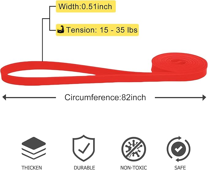 • Resistance Bands Levels: Pull up assist bands come in 3 resistance levels, and each color is different resistance and width for different purposes. Yellow(8-15 lbs), Red(15-35 lbs), Black(25-65 lbs)