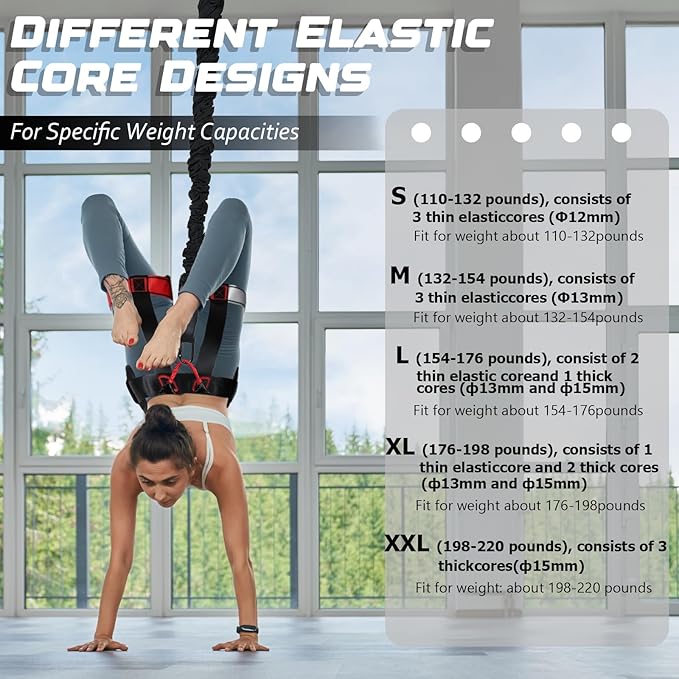 - 5 Adjustable Resistance Levels for All Fitness Levels – This bungee fitness set offers progressive resistance with 5 weight classes (110lbs, 132lbs, 154lbs, 176lbs, 198lbs) to match different body weights and training intensities. Each class features varying elastic core thickness (Φ12mm–Φ15mm) for customized workouts—ideal for beginners to advanced athletes.