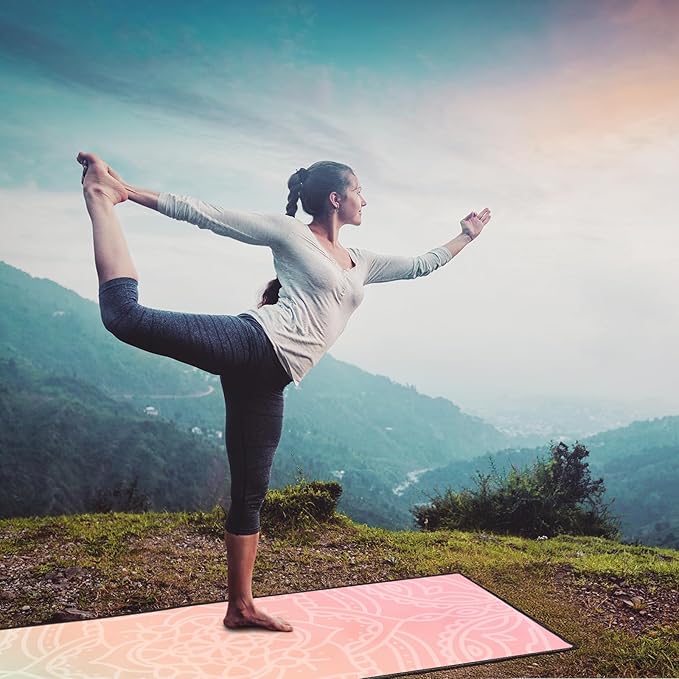 QiyI Yoga Mat Towel with Corner Pockets, Non Slip Sweat Absorbent Hot Yoga Towels, Soft Yoga Blankets with Travel Bag, Skidless Mat Cover for Workout, Gym, Fitness - 70"x26", Dreamy Pink Mandala