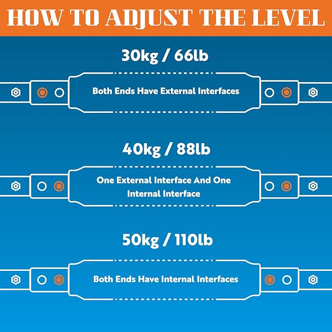 - š 3-LEVEL HEAVY RESISTANCE : Switch between 66, 88, and 110 lbs quickly with our no-tools adjustment system, perfect for progressive overload.