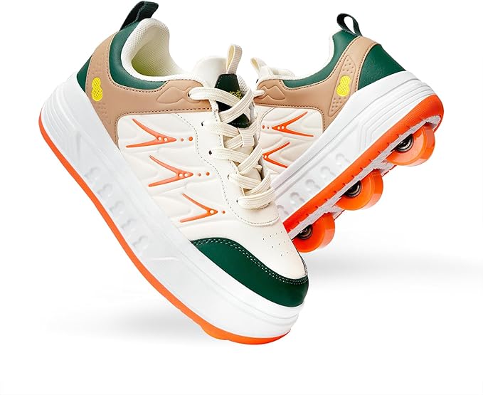 • 【Occasions & Function】Pairobin roller skates is a pair of sneaker with wheels, suitable for skate lovers of all levels. With wheels installed, they can be used as skate shoes for exciting and fun skating. Beginners can start by removing the two front wheels for easier learning, and install all wheels once they get proficient. When all wheels are removed, wheel shoes work as stylish casual sneakers. Ideal for outdoor activities, entertainment, and even daily commuting in a fun way