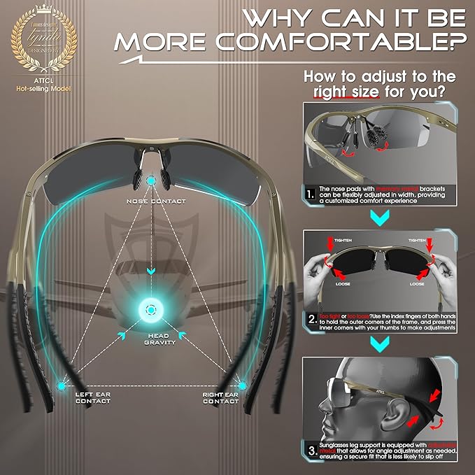 - PREMIUM GIFT PACKAGE: Each pair of ATTCL men’s sunglasses comes with zipper case, microfiber pouch, cleaning cloth, box, and polarization test card. Stylish men’s sunglasses polarized make perfect gifts for Father, Husband, Son, or Boyfriend. These versatile sunglasses men suit driving, fishing, and everyday adventures