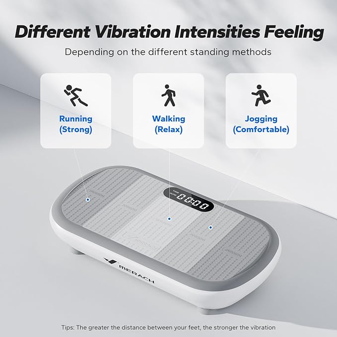 • Intelligent Automatic Speed Change: This vibration plate can automatically detect your standing state: it will automatically start when you stand on it, and it will automatically stop after you leave it for more than 30s, which greatly simplifies the operation steps and improves safety. In addition, it can automatically adjust the vibration speed according to your footstep frequency during exercise, providing a more personalized and efficient exercise experience.