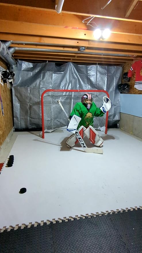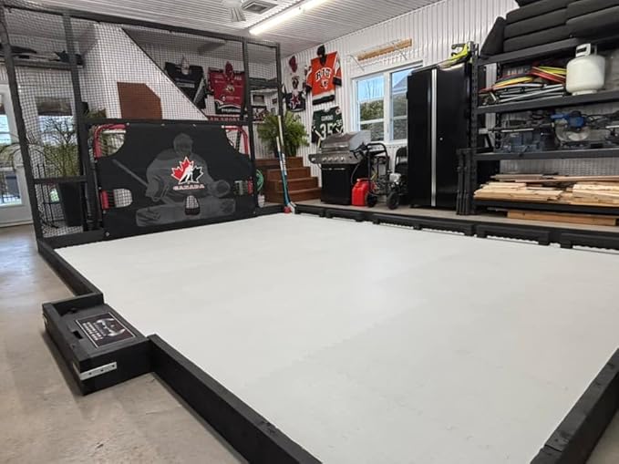 - PORTABLE & EASY TO ASSEMBLE – Patented interlocking tiles snap together in minutes for instant setup. Create a customizable synthetic ice surface anywhere—garage, basement, driveway, or backyard—for hockey practice whenever you want.