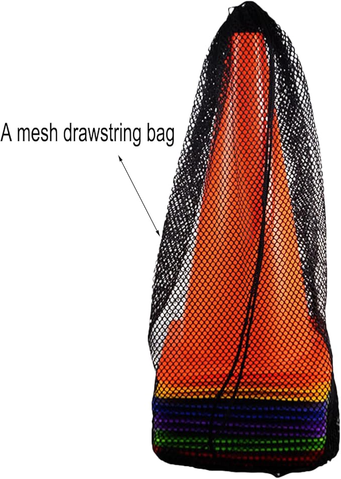 • Size - measures 12 inches in height, 6.7 inches in diameter. Four holes on safety cones for attachment, 1 mesh drawstring bag