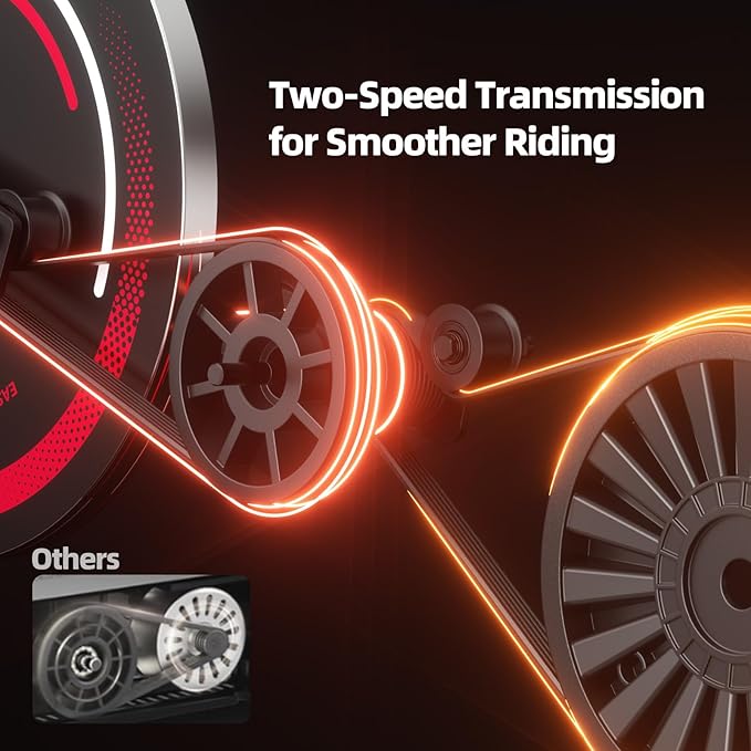 - 【100-Level Silent Magnetic Resistance – Train Anytime】 Equipped with 100 adjustable levels of magnetic resistance, this bike allows you to fine-tune every ride to match your fitness goals. The whisper-quiet belt drive system ensures smooth and silent operation, so you can work out early in the morning or late at night without disturbing family members, neighbors, or roommates. From gentle recovery spins to high-intensity hill climbs, this home exercise bike delivers a versatile and customizable training experience that grows with your progress