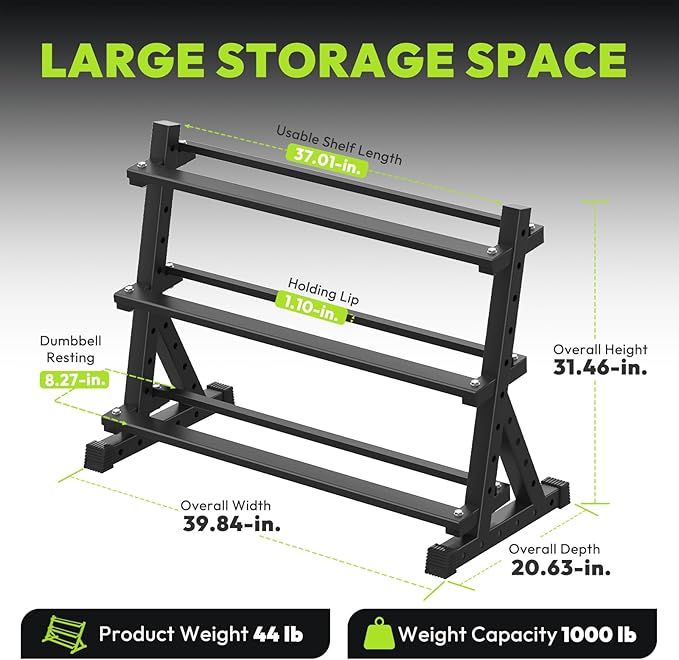 - SPACE-SAVING SOLUTION: The heavy-duty rack maintains a compact footprint while securely holding all dumbbell weights, keeping your workout area tidy and equipment easily accessible.