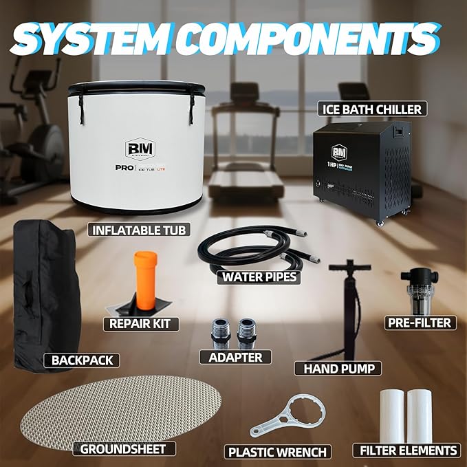 - Complete Recovery System & Accessories: Includes a high‑pressure pump, groundsheet, PTFE tape, piping, seals, wrench, adapter, quick connectors, plus a replaceable filter. Everything you need for fast setup, ongoing maintenance, and a seamless cold‑or‑warm plunge experience