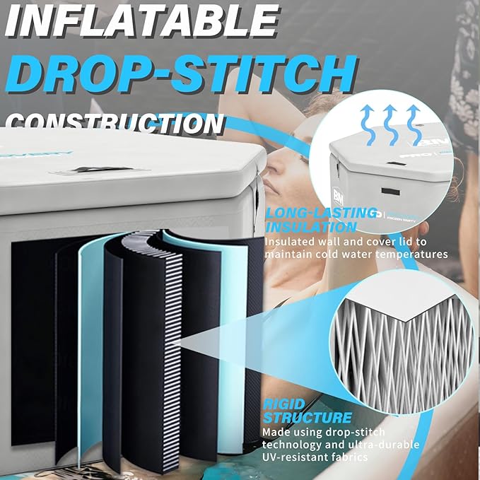 - Durable and Fully Insulated: Crafted from military-grade, double-layer PVC, the tub features inflatable drop-stitch insulation throughout the body and lid to maintain water temperature longer, even in warm environments. The material is UV-resistant, puncture-resistant, and holds its shape after multiple folds for long-term performance and easy storage